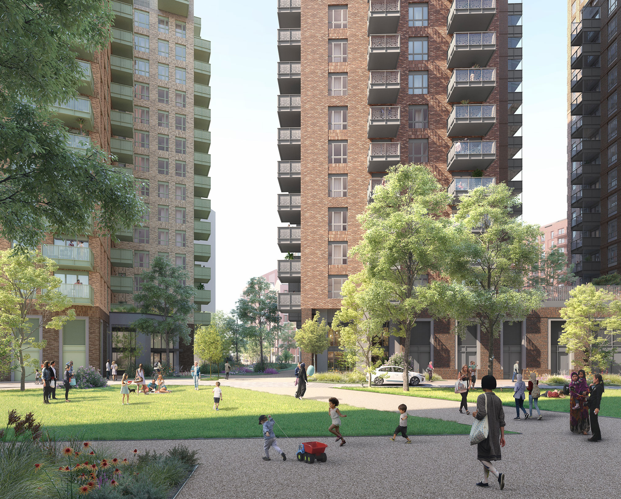 2,800 homes in a mix of 1, 2, 3 and 4 bedrooms with private and public amenity spaces